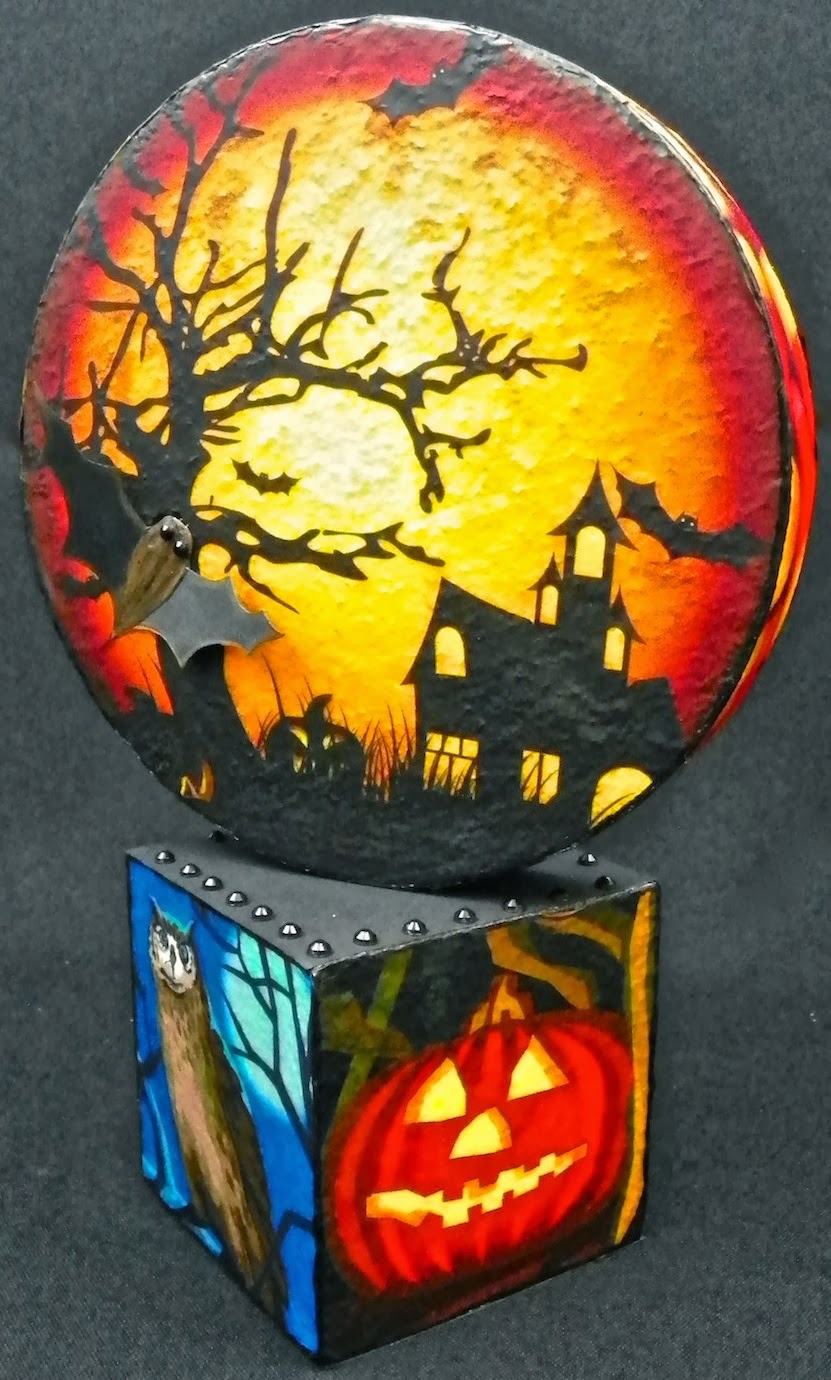 I made this freestanding "full moon" decoration using a variety of clip art. Set it on the party table, dinner table, coffee table, bookshelf, fireplace mantel - anywhere you need a little Halloween spirit.